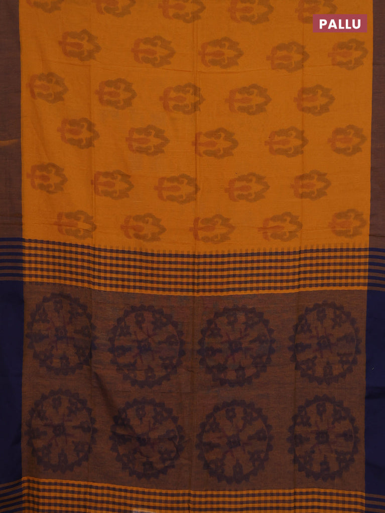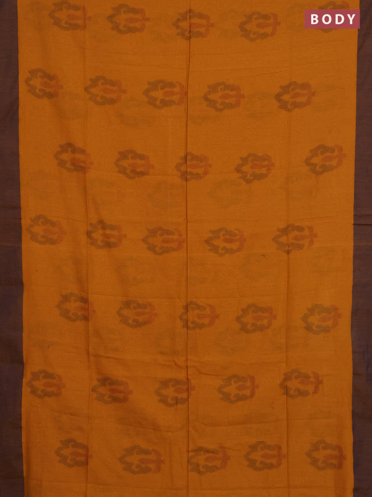 Bengal soft cotton saree dark mustard and grey with allover weaves and simple border
