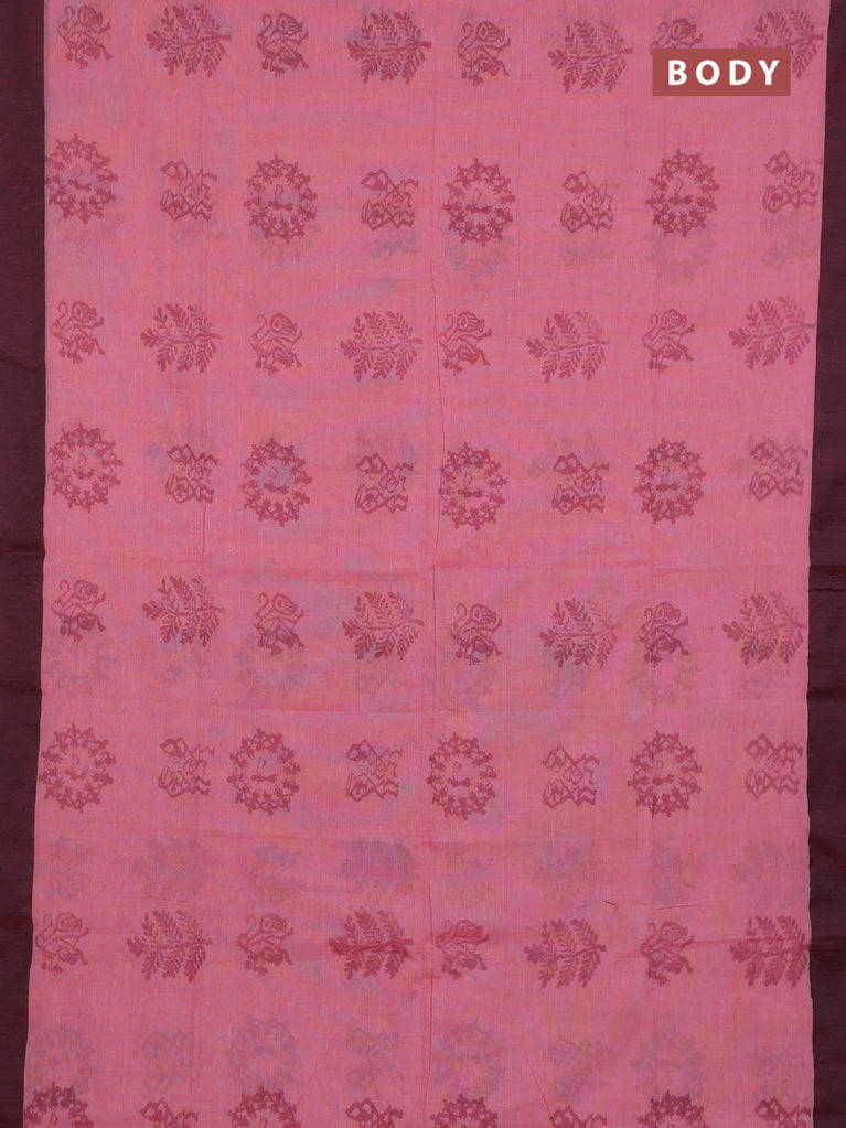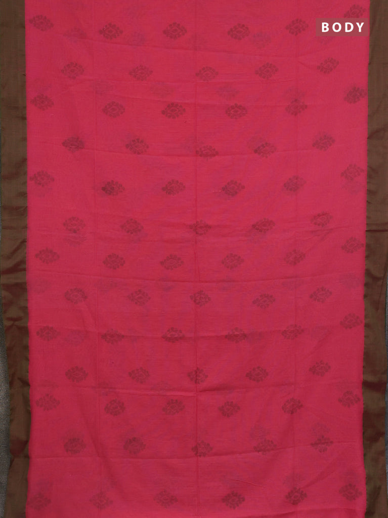 Bengal soft cotton saree candy pink and green with butta weaves and simple border