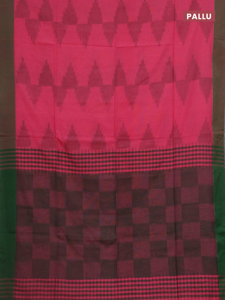 Bengal soft cotton saree candy pink and green with allover weaves and simple border