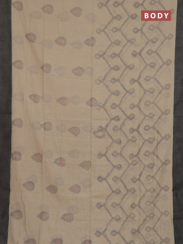Bengal soft cotton saree beige and black with allover weaves and simple border