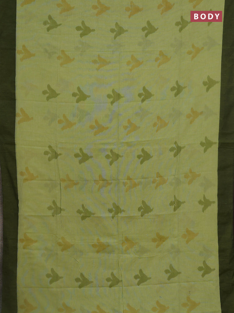 Bengal soft cotton saree green and blue with allover butta weaves and simple border