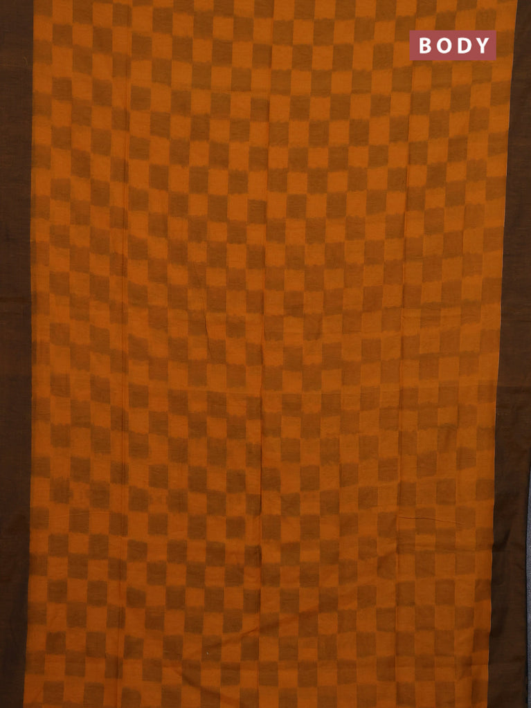 Bengal soft cotton saree dark mustard and black with allover weaves and simple border