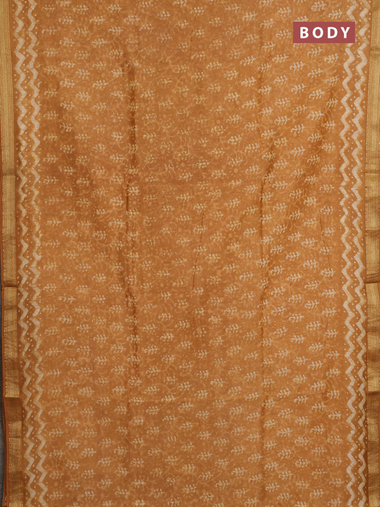 Chanderi bagru saree mustard yellow with allover ikat prints and maheshwari border
