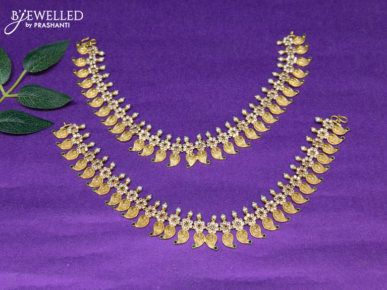 Antique anklet manga pattern with kemp & cz stones and pearls
