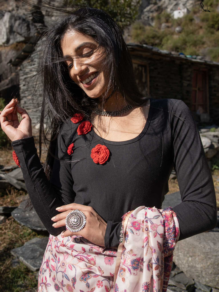 This gorgeous cotton red and pink blouse is the perfect accompaniment for those who never hesitate to seek their hearts’ true desires.