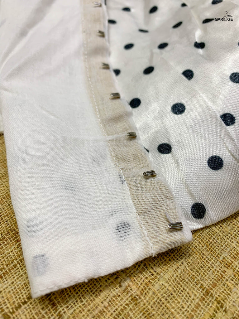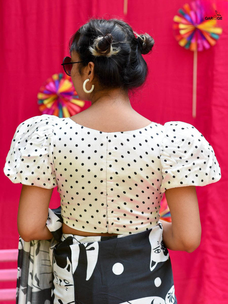 Su, the model is wearing size S blouse and the saree is Flying to the Moon Polka.