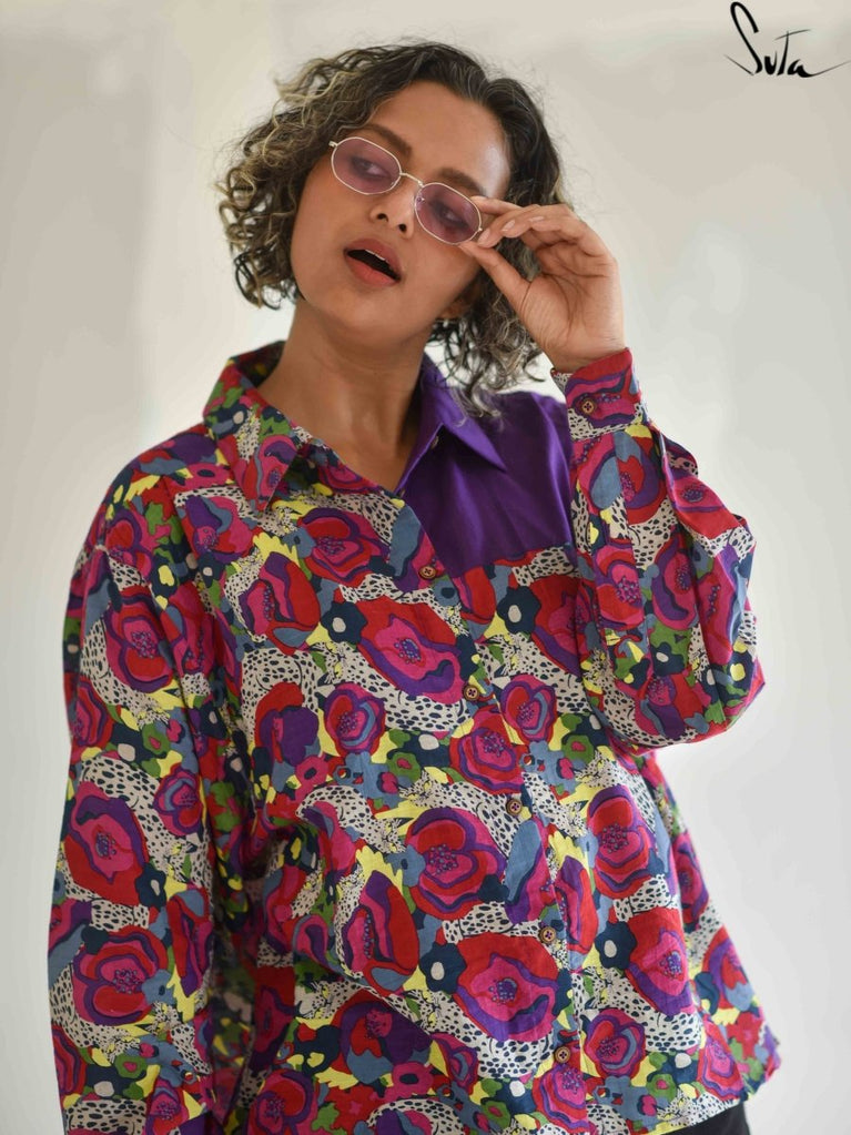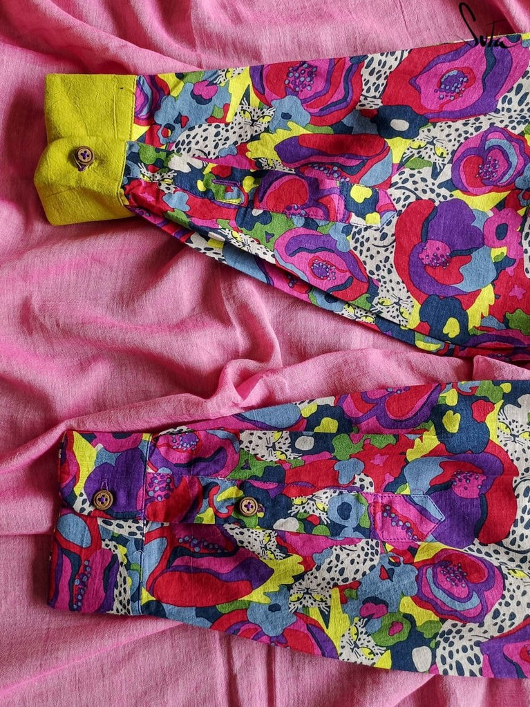 Get in touch with your playful side, in this multi-coloured cotton shirt. The shirts design is such that one size flatters all body types (XS to 2XL)