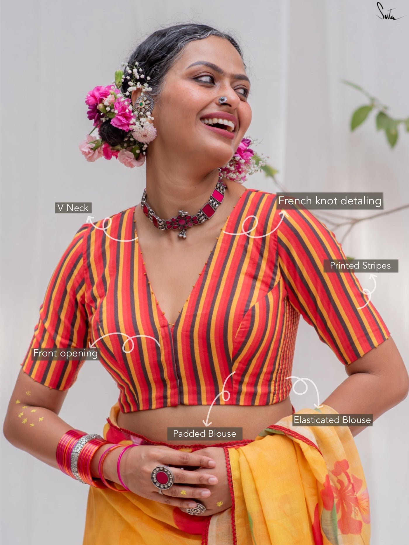 Note: Our blouse comes with an extra margin, allowing you to easily size up for a perfect fit.