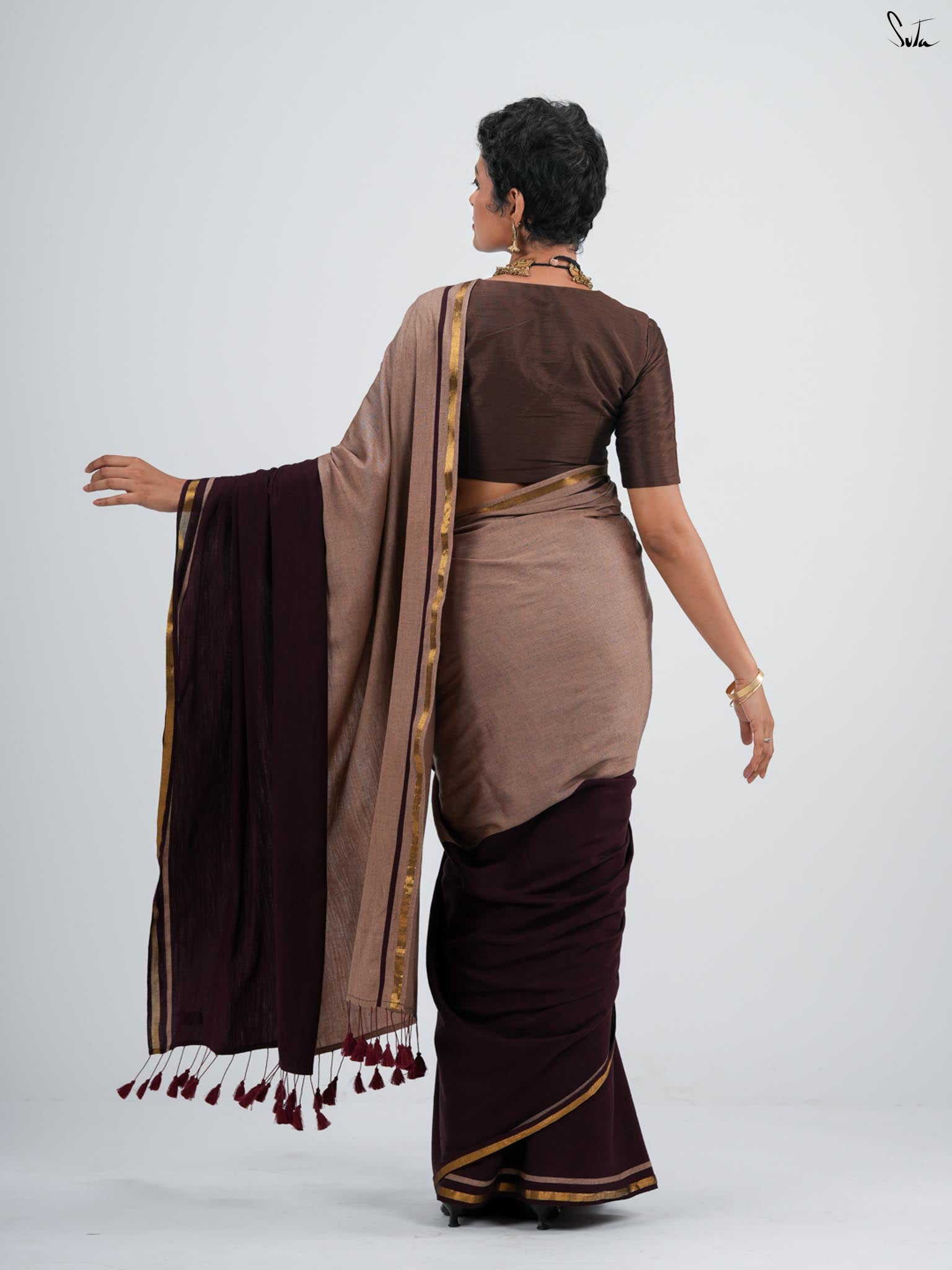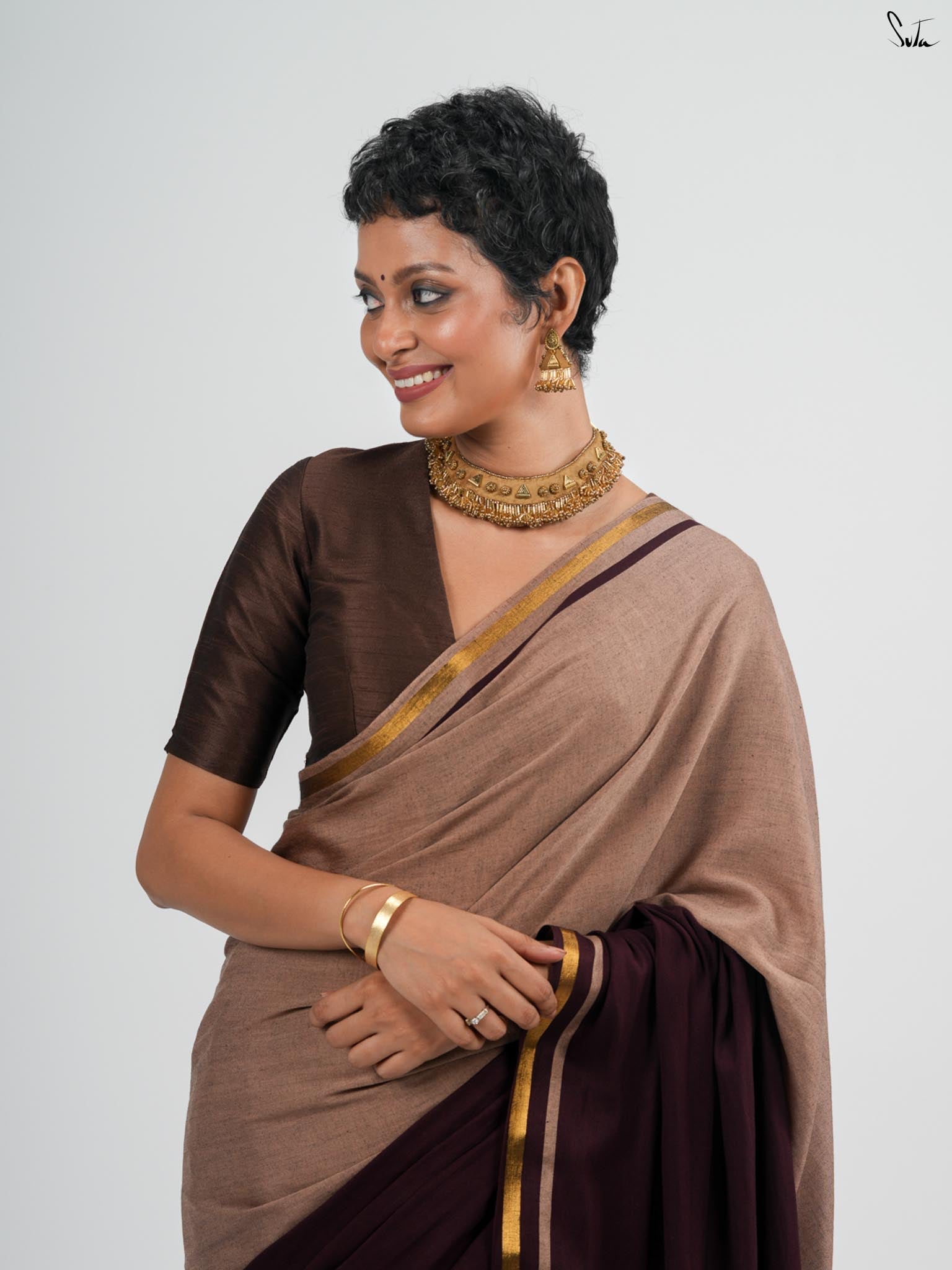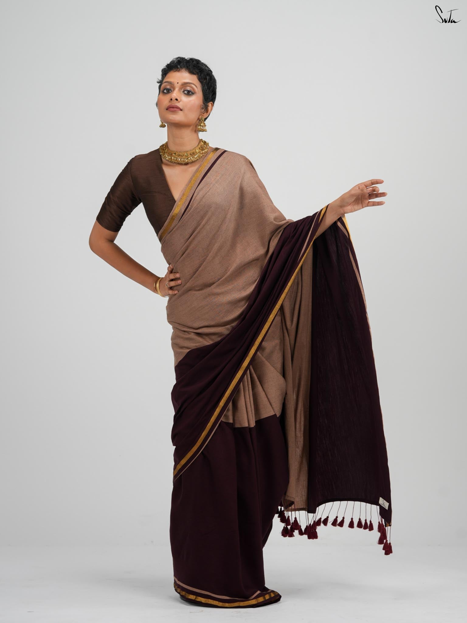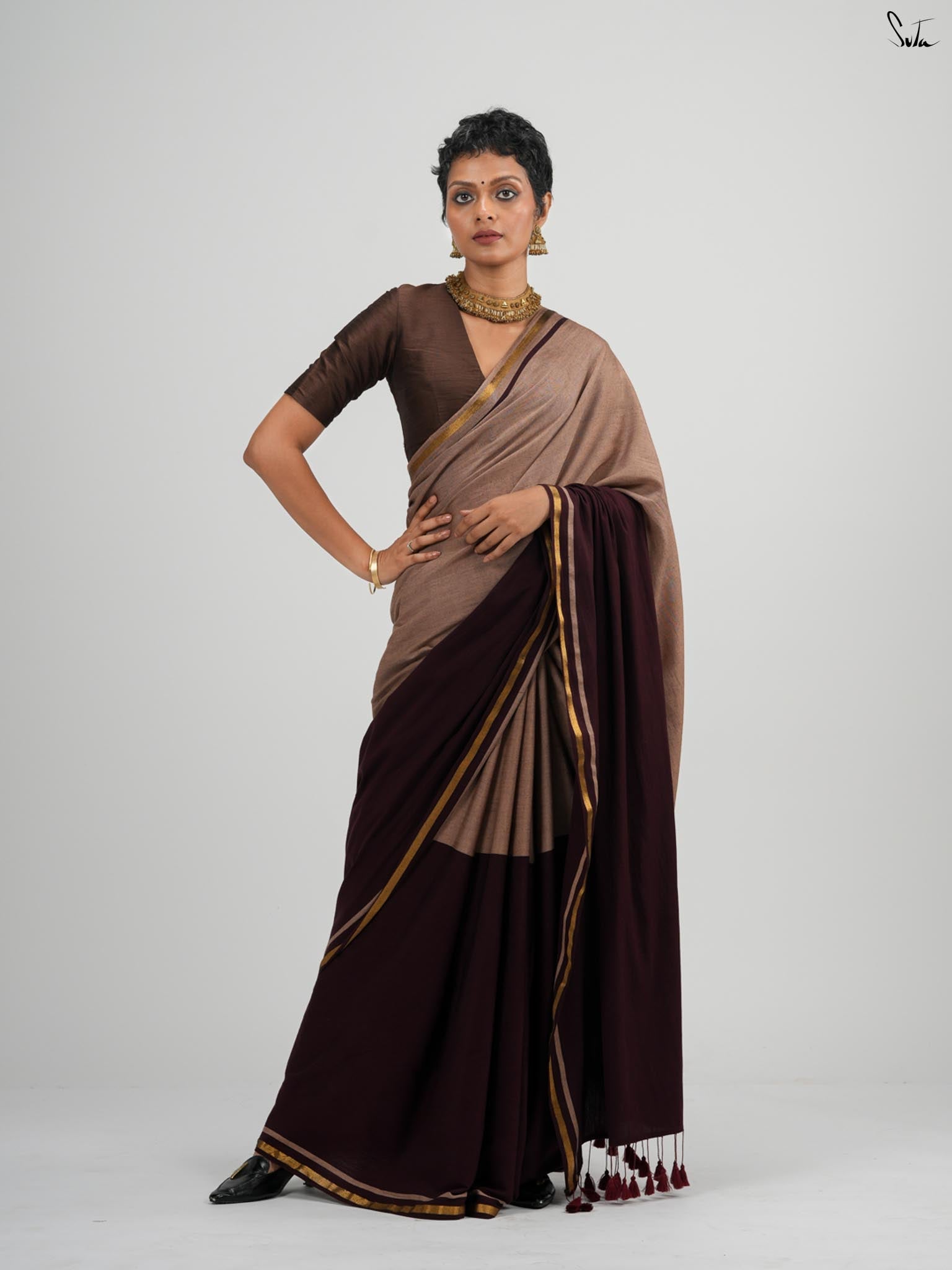 Cotton fabric dates back to some of the most ancient civilisations and it has a strong presence in the modern wardrobe as well. The softness and lightness of cotton combined with its strength and versatility makes it one of the most popular choices, especially for the Indian climate. We took this simple, elegant fabric and combined it with acrylic for that added sheen and voila! We love what we see and the saree falls so  beautifully that it feels like second-skin!