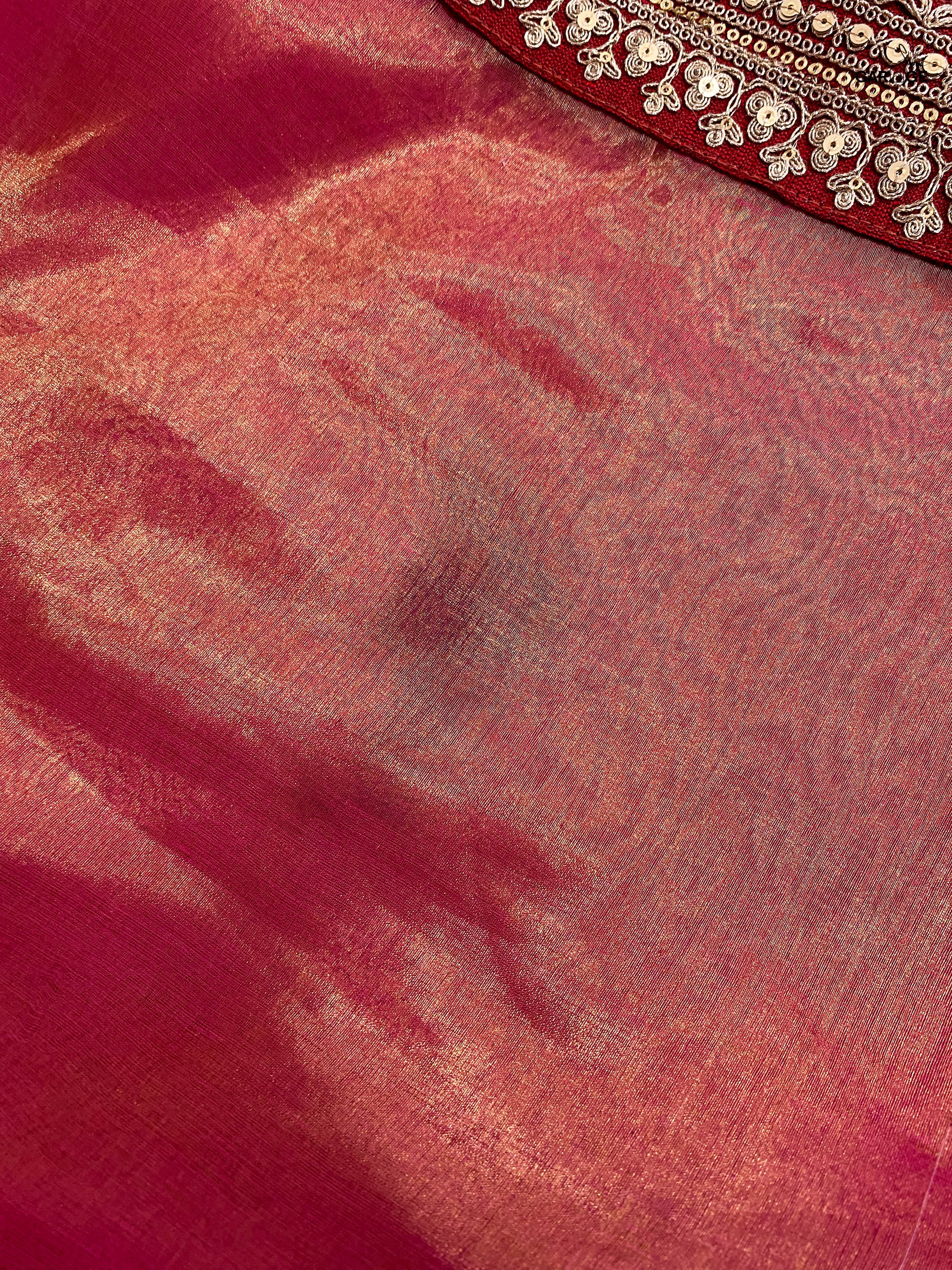 The Chanderi fabric, which combines pure silk on the warp and zari on the weft, radiates light from within and stands out in the most delicate way. The sarees are painstakingly handwoven, with master weavers dedicating a few days to each piece. In fact, the tradition of Chanderi weaving dates back to the 13th century. In the 1350s, Kosthi weavers migrated to Chanderi, a town in Madhya Pradesh, from Jhansi, from where they propagated this weave. It is said that the royals of several dynasties famously favoured Chanderi fabrics for their richness and utility in the searing hot summers of the plains. Suta has further added to the festive allure of the fabric with delicate embroidered lace embellishments.