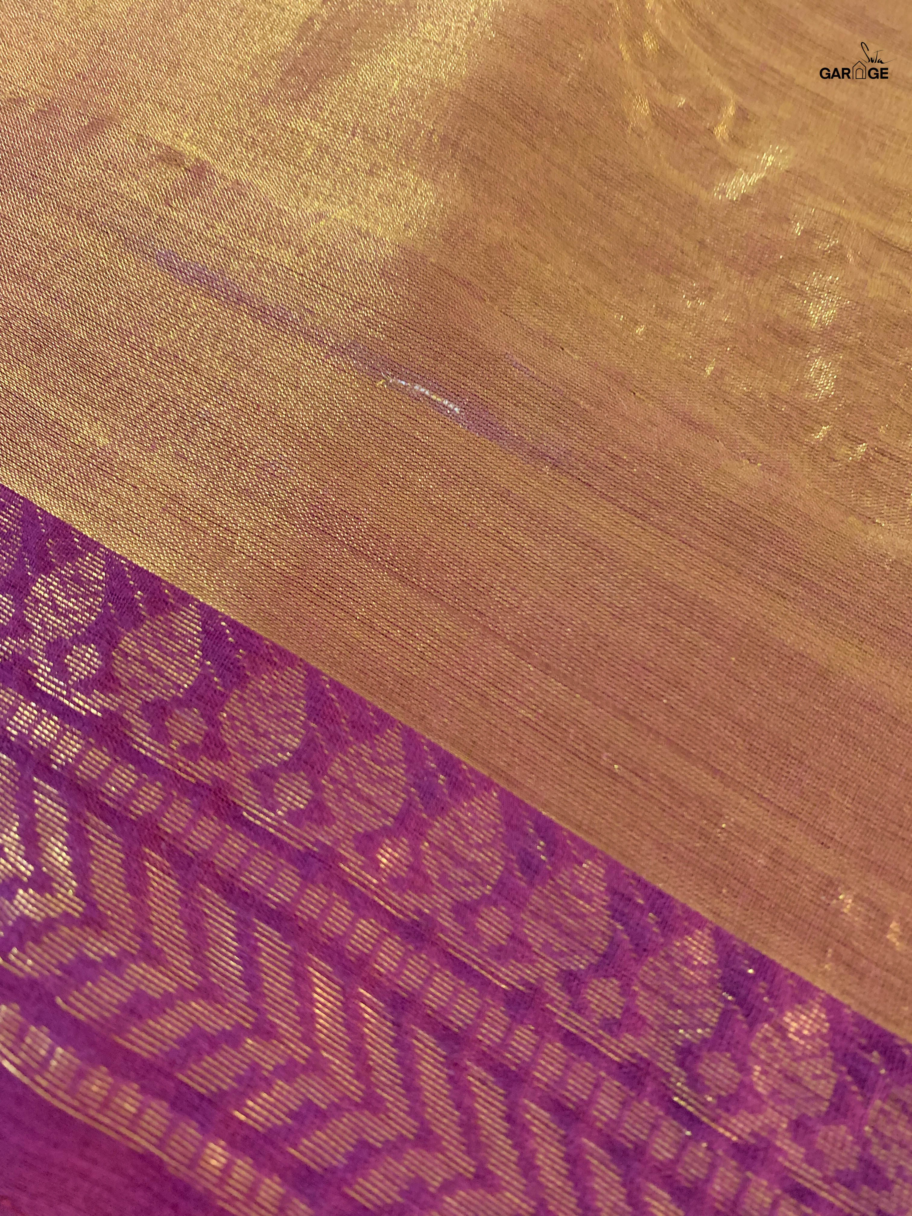 Suvarna Rekha, a dual-colored copper tissue cotton saree with an elegant wine-colored jacquard border, embodies the essence of luxury and warmth. "Suvarna," meaning "golden," reflects the richness of joyous moments, making it perfect for celebrations that deserve to be cherished. Let this saree wrap you in its radiant charm, reminding you that every day holds the potential for brilliance.