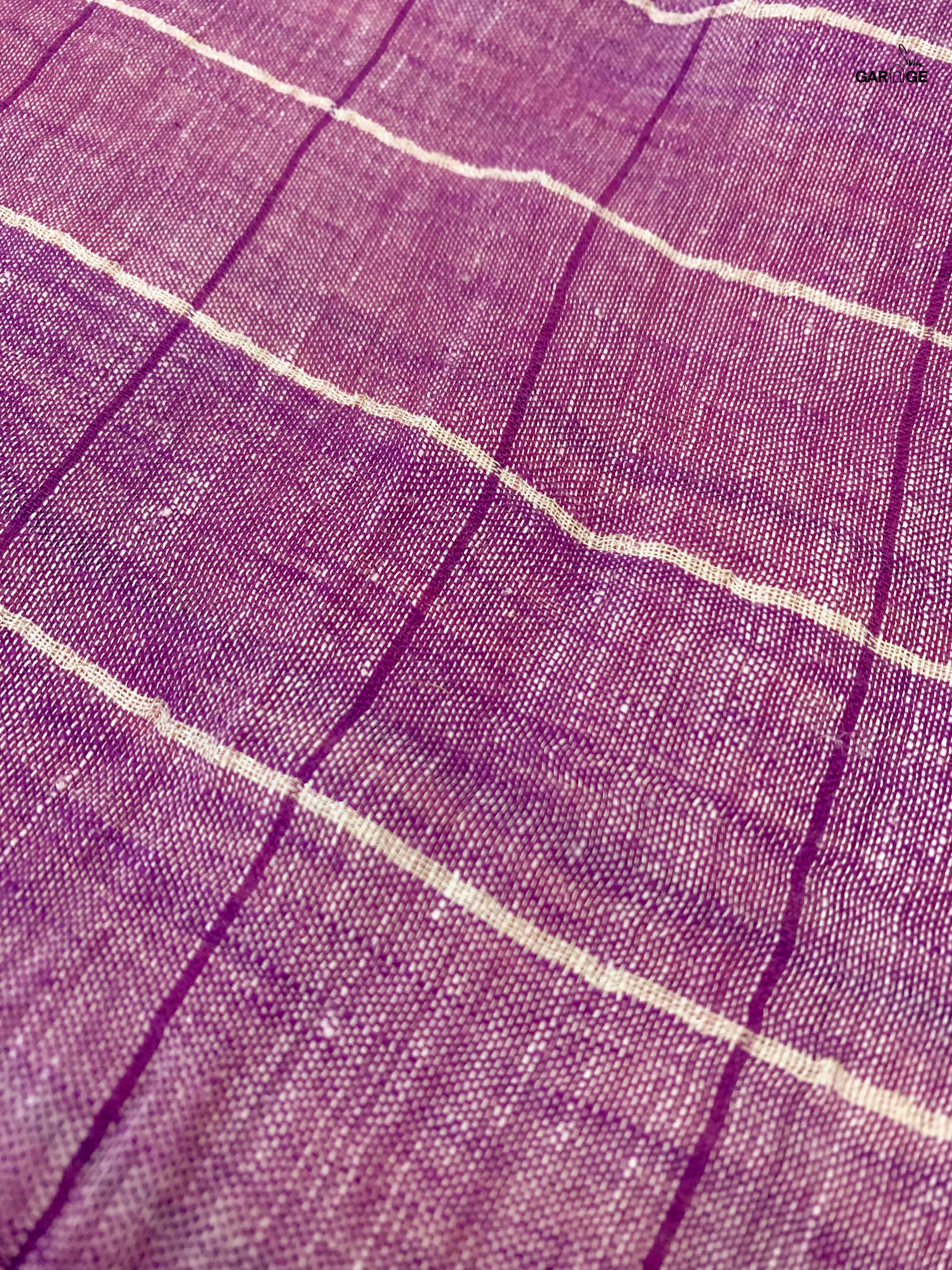 Keep your style promises with Pinky Promise, a charming light pink cotton linen saree that exudes grace and elegance. The purple windowpane checks add a playful touch, while the bold pink border with a delicate silver zari line creates a beautiful contrast. The vibrant purple selvedge and pallu bring an extra layer of charm and sophistication. Perfect for both office wear and formal occasions, pair it with our Gul Gappa blouse to ace the look.