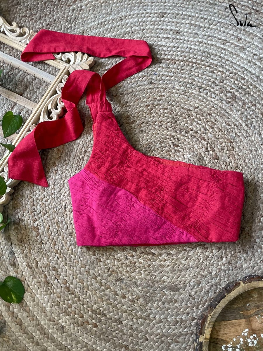 This gorgeous cotton red and pink blouse is the perfect accompaniment for those who never hesitate to seek their hearts’ true desires.