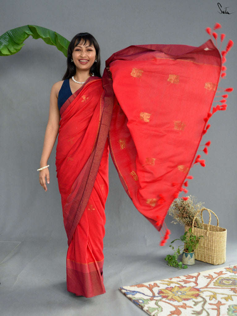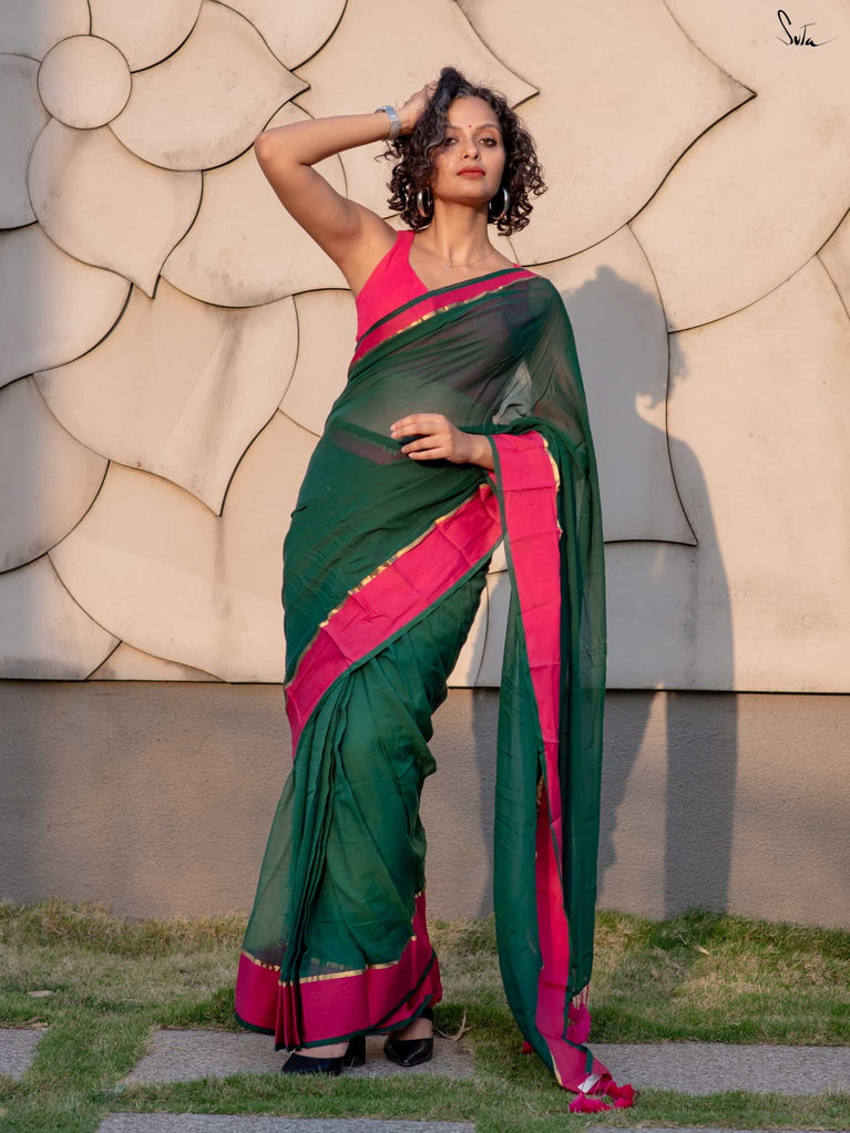 Note: Our mul sarees are slightly transparent, it’s the nature of the fabric and part of its soft, airy charm.
