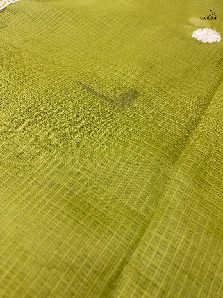 Kota cotton fabric is renowned for its softness, light weight and ease of wear. It is made using an open weave with fine checks, which are called ˜khats. This weave ensures that the resultant fabric is airy and comfortable. This Kota cotton fabric forms the base of these sarees, which are further embellished with Lucknowi chikankari work. Chikankari is a style of embroidery that has its roots in Lucknow, the capital of Uttar Pradesh. The word 'chikan' is derived from the Persian word 'chikeen'. In its most traditional form, chikankari work reflects the influence of the intricate carving patterns found in Mughal architecture. The legacy of chikan work in Lucknow dates back to more than 200 years.