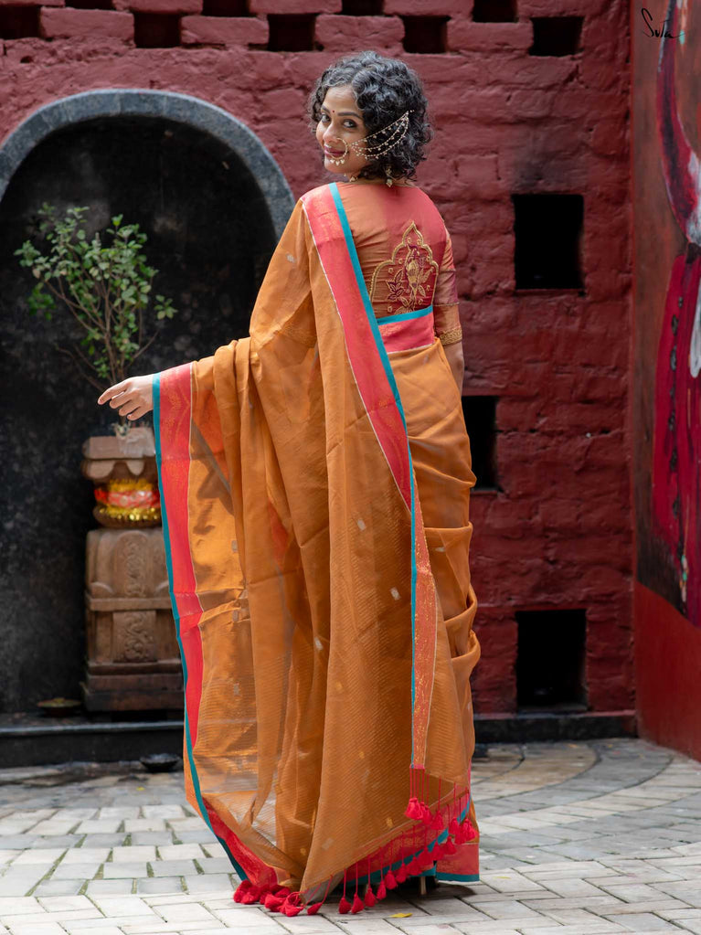 Mustard yellow handwoven cotton silk that lights you up. A spicy shade that complements every Indian skin tone. Feels warm, bold, and ready to turn heads. Wear it when you want to brighten the room—and yourself.