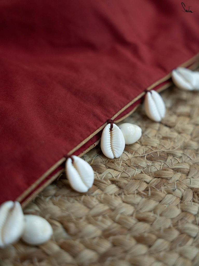 Designed with Pujo days in mind, this maroon cotton blouse with a refined dome neckline and sleeveless cut is all about keeping you chic and comfortable. The breathable cotton keeps you cool when the pandal crowds get overwhelming. It’s the kind of blouse that lets you move, laugh, eat, dance, and join the adda without a second thought. Pair it with your favourite saree and you’re set for long, joy-filled Pujo days—no fuss, just full carefree abandon.