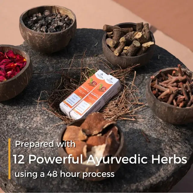An Ayurvedic formulation tailor made to reduce face and body pigmentation, underarm darkening, stubborn dark spots, sun damage, age spots and dark patches. Potent astringent properties to restore health and enhance radiance of the skin makes this a must have for all age groups. It envelops the skin and deeply moisturizes, diminishing uneven skin tone and dark spots.