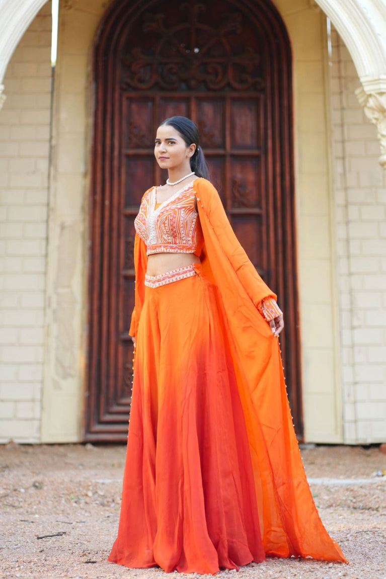 Orange Indo-Western Coord Set with Cape