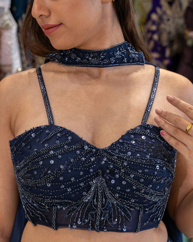 Net lehenga with Full Steal Grey Sequence Work on lehenga & Blouse