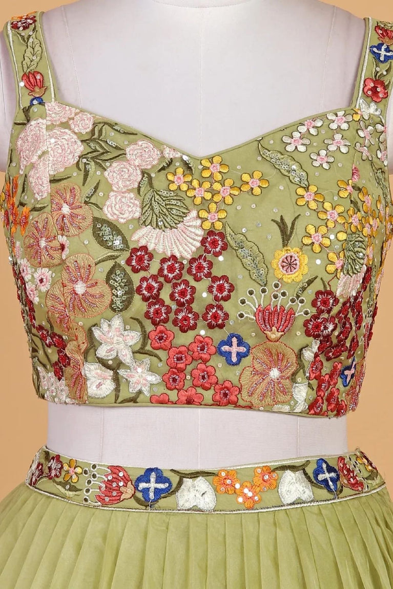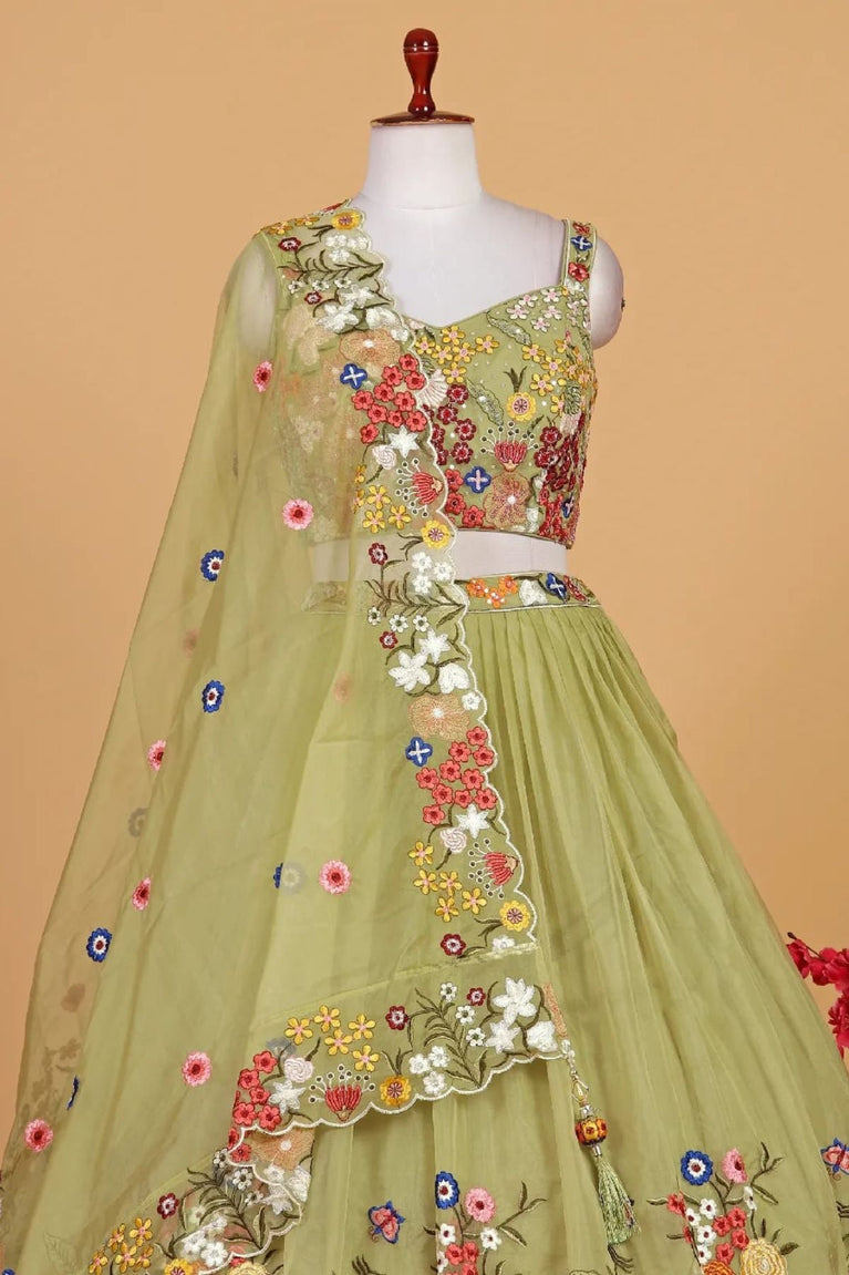Pista Green Embroidered Lehenga