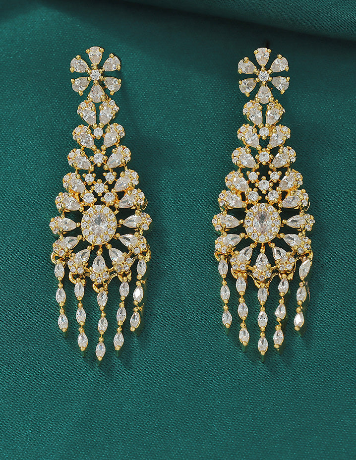 A radiant Gold-toned necklace and earring set adorned with sparkling Bud and floral motifs, perfectly blending elegance and charm for your special occasions.