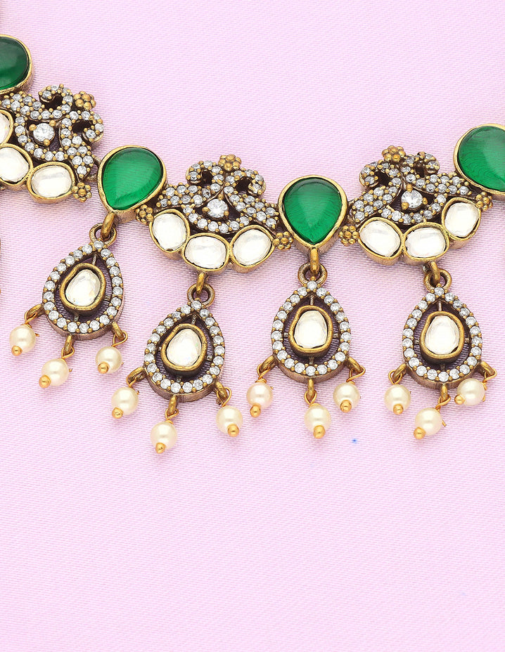 Designer Zirconia Royal Eemerald Beads Kempu Necklace Set