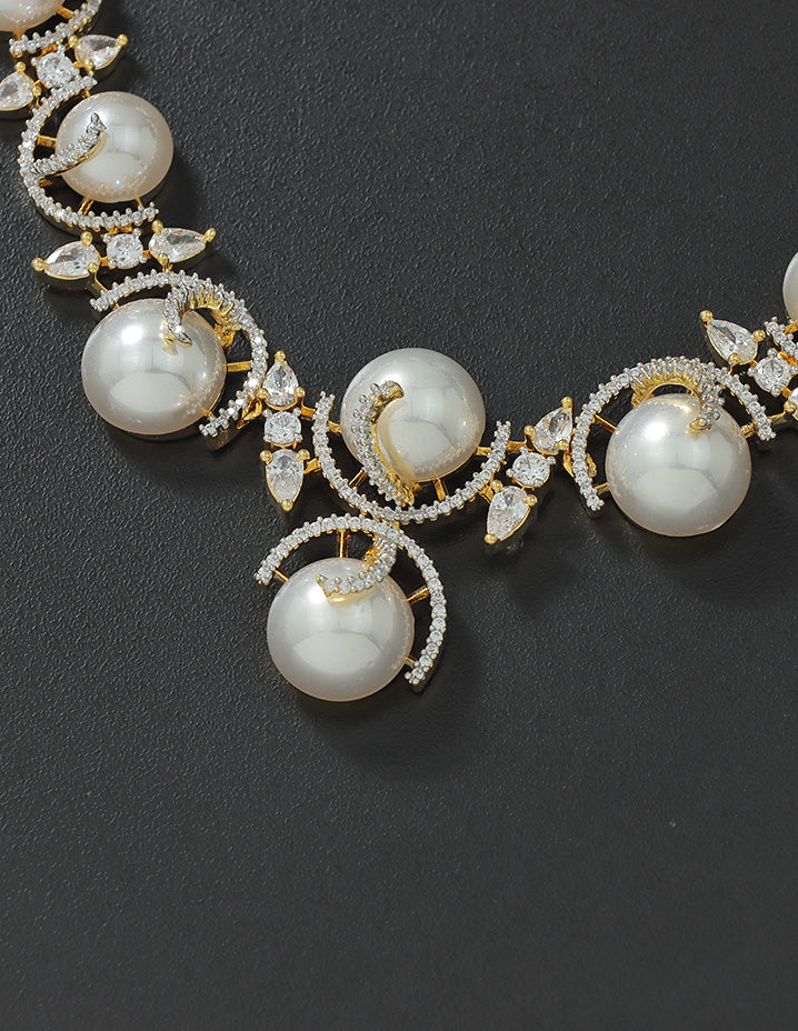 Designer Zirconia Pearl Whirl Elegance Necklace Set