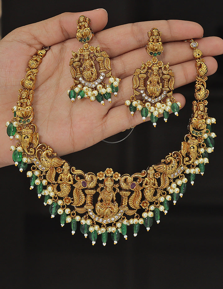Designer Lakshmi Devi Emerald Matt Kempu Necklace Set
