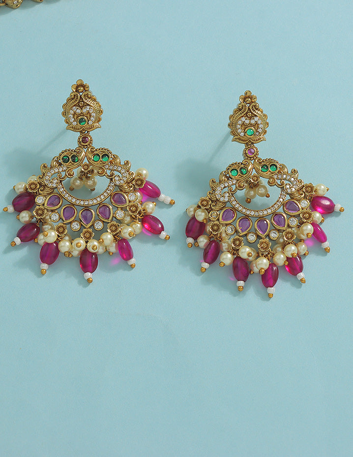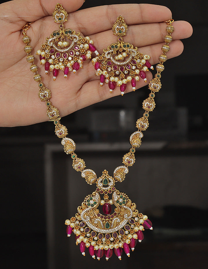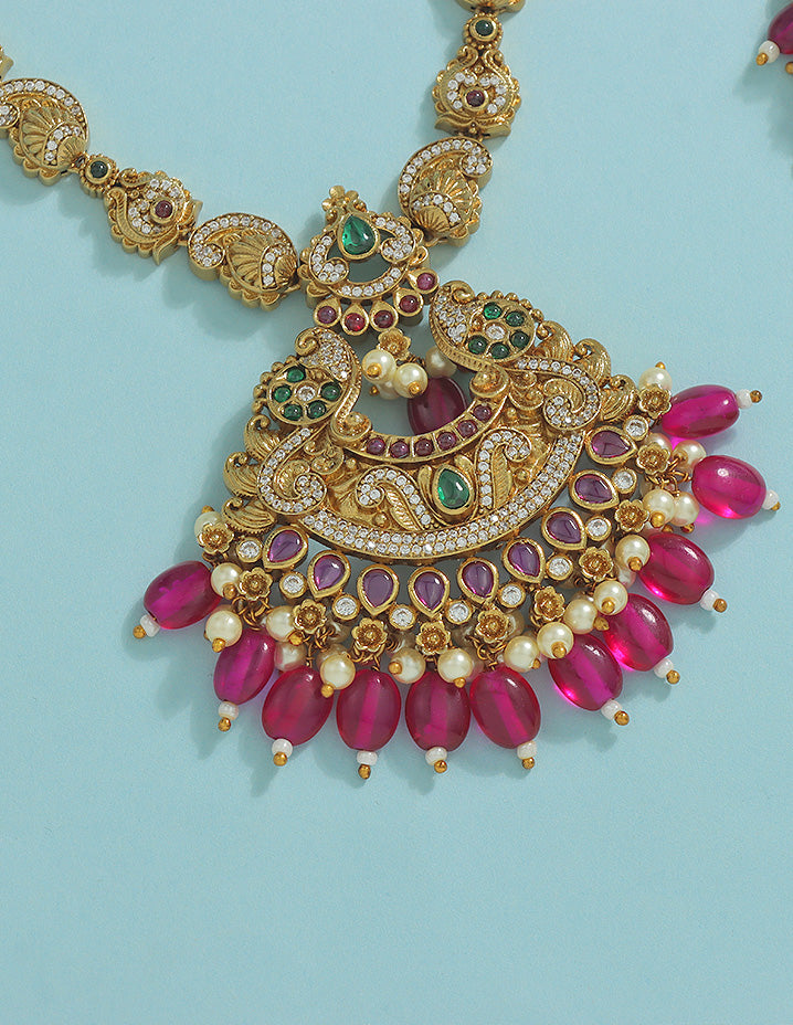 Designer Elegant Ruby Matt Kempu Necklace Set