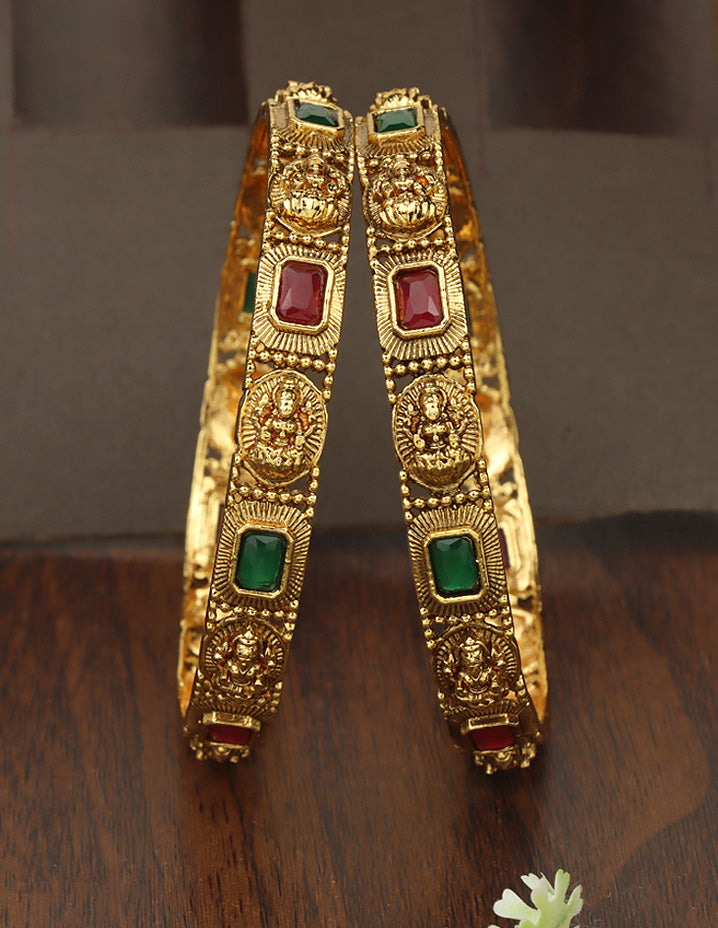 Matt-plated bangles with Ruby and Green Kempu stones—elegant, high-quality, and perfect for any occasion!