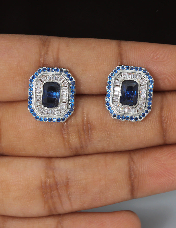 Exude timeless elegance with these Navy Blue studs, framed in sparkling white and Navy Blue stones—perfect for a regal and refined look.