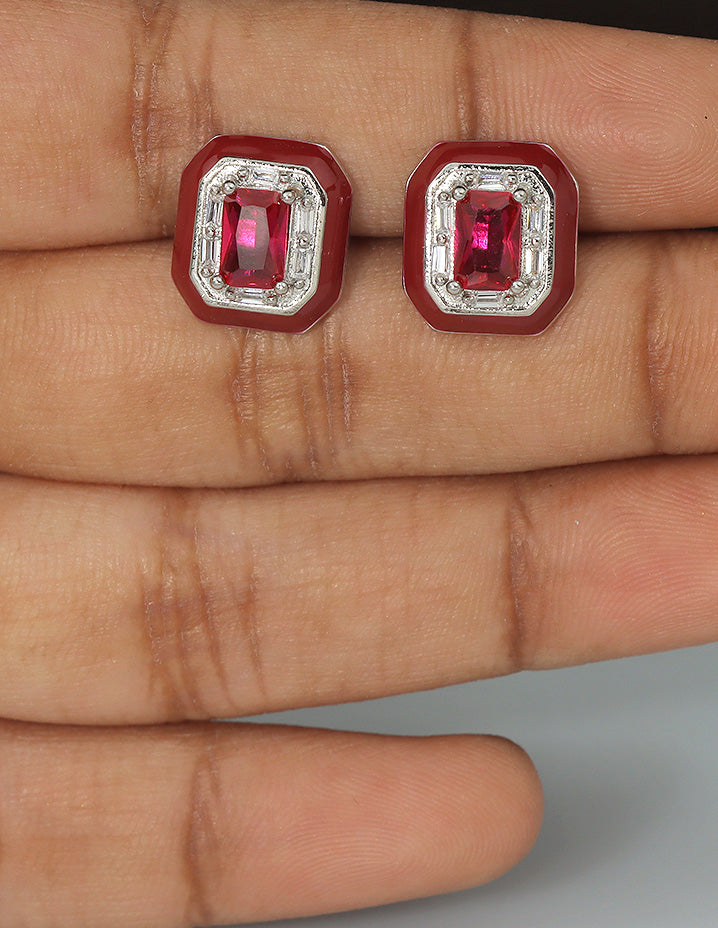 Designer Pink Frame Ruby Crystal Stud Earrings