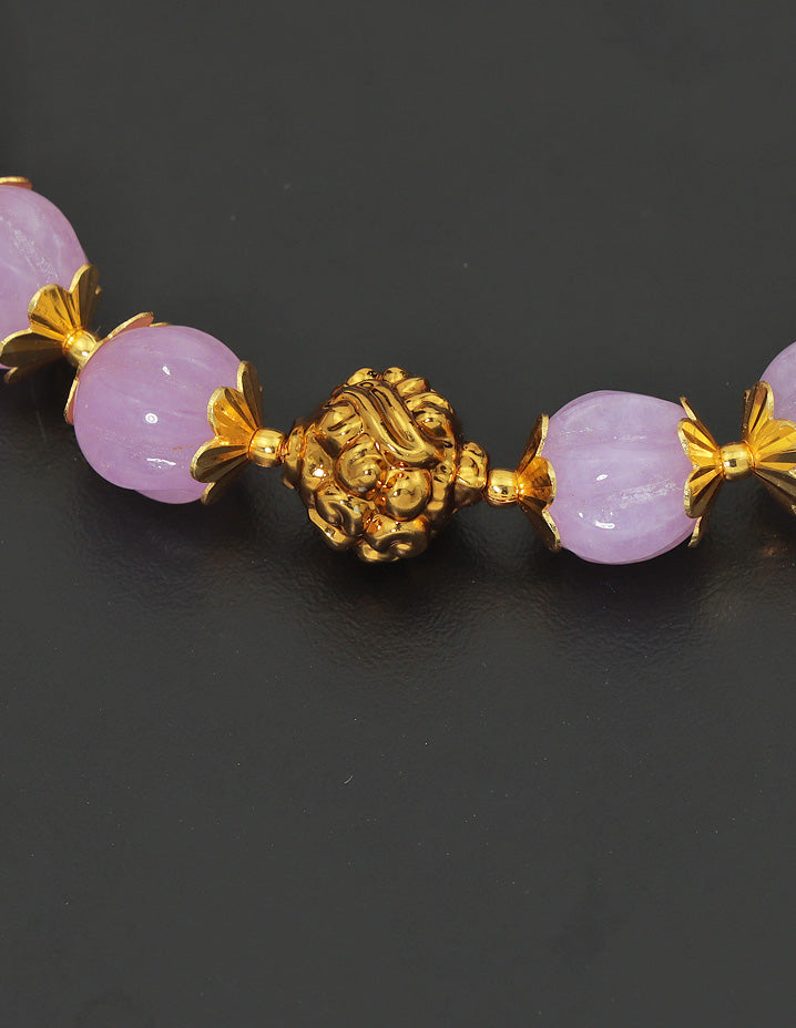 Make a bold statement with our Amethyst Pumpkin Beads Mala, accented with gold beads and fine metalwork. A vibrant and stylish pick for any traditional occasion!