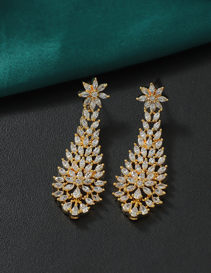 A radiant Gold-toned necklace and earring set adorned with sparkling Bud and floral motifs, perfectly blending elegance and charm for your special occasions.