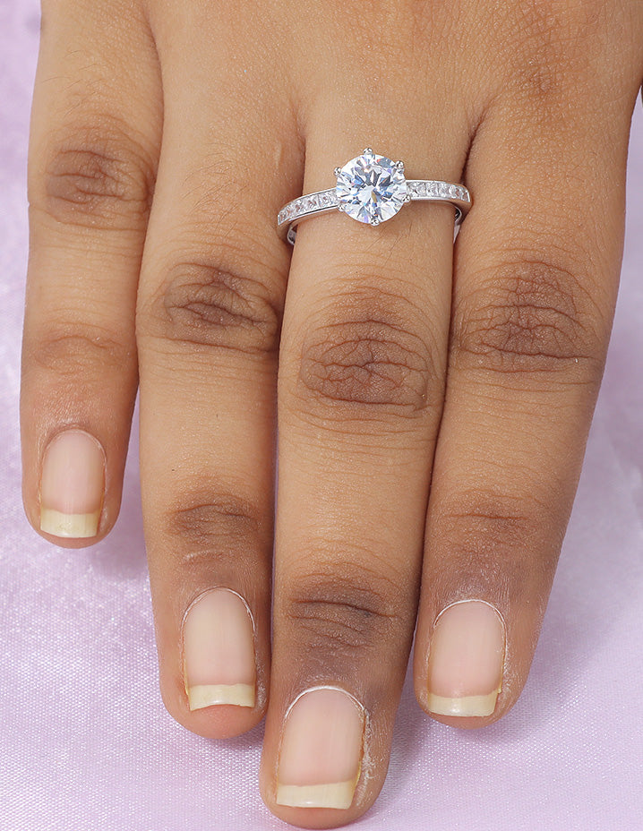 Shine like the star you are! The Solitaire Adjustable Ring features a brilliant round-cut stone on a sleek band with delicate side accents — pure sparkle, pure elegance.