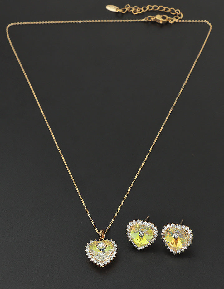 This beautiful designer chain is made of a high-quality tensile alloy that's lightweight and fun. The pendant is a dazzling Swarovski crystal With Yellow and White Coloured and in a Heart shape