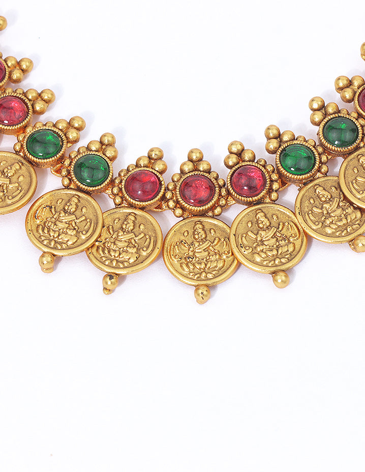 Embrace classic elegance with the Divine Heritage Coin Set, adorned with intricately embossed antique-style coins and paired with matching earrings—perfect for a timeless traditional look.