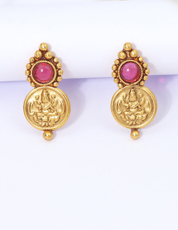 Designer Matt Kempu Temple Design Lakshmi Devi Jhumka Earrings
