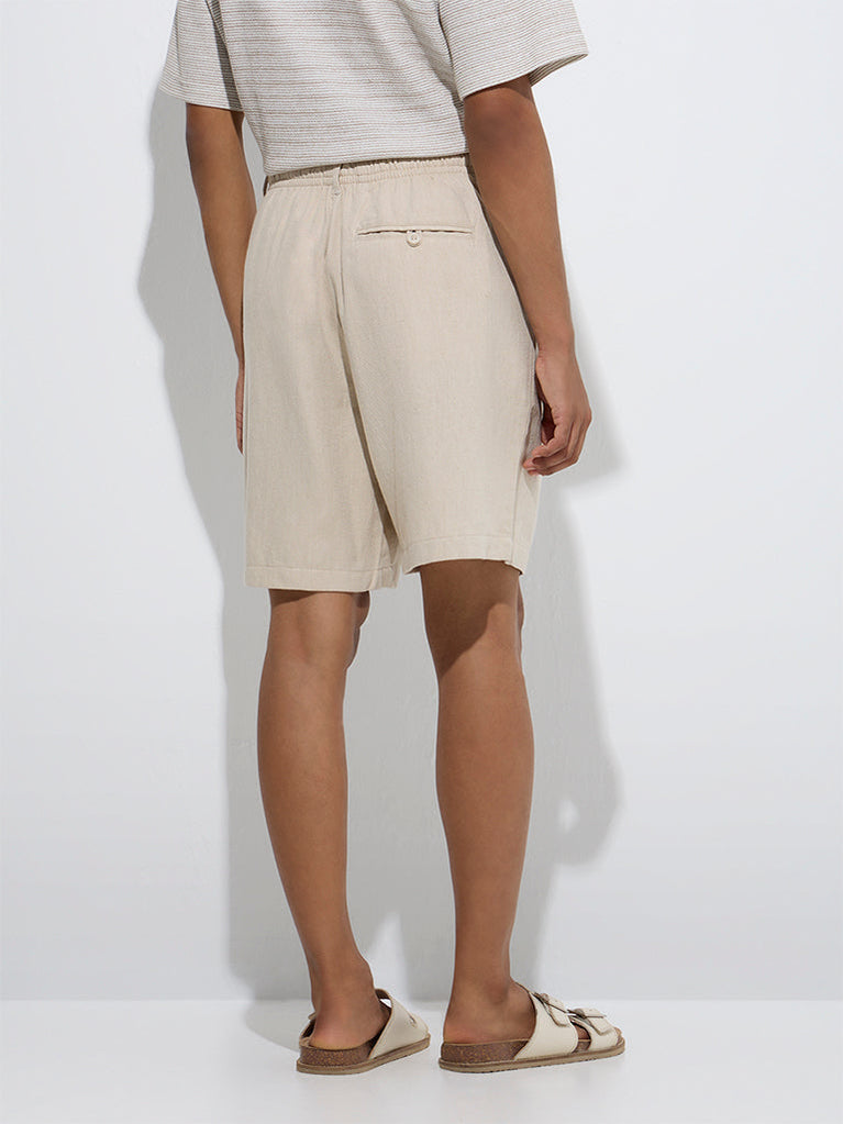 ETA Beige Relaxed-Fit Mid-Rise Cotton-Blend Shorts