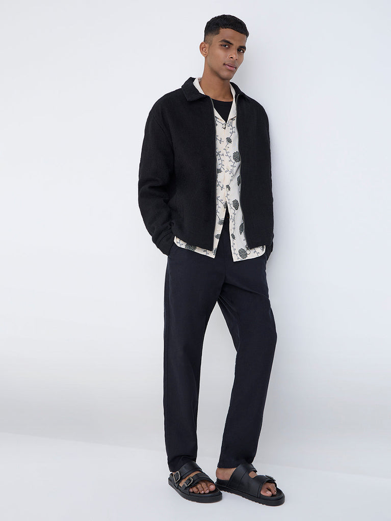 ETA Black Embroidered Relaxed-Fit Cotton Jacket