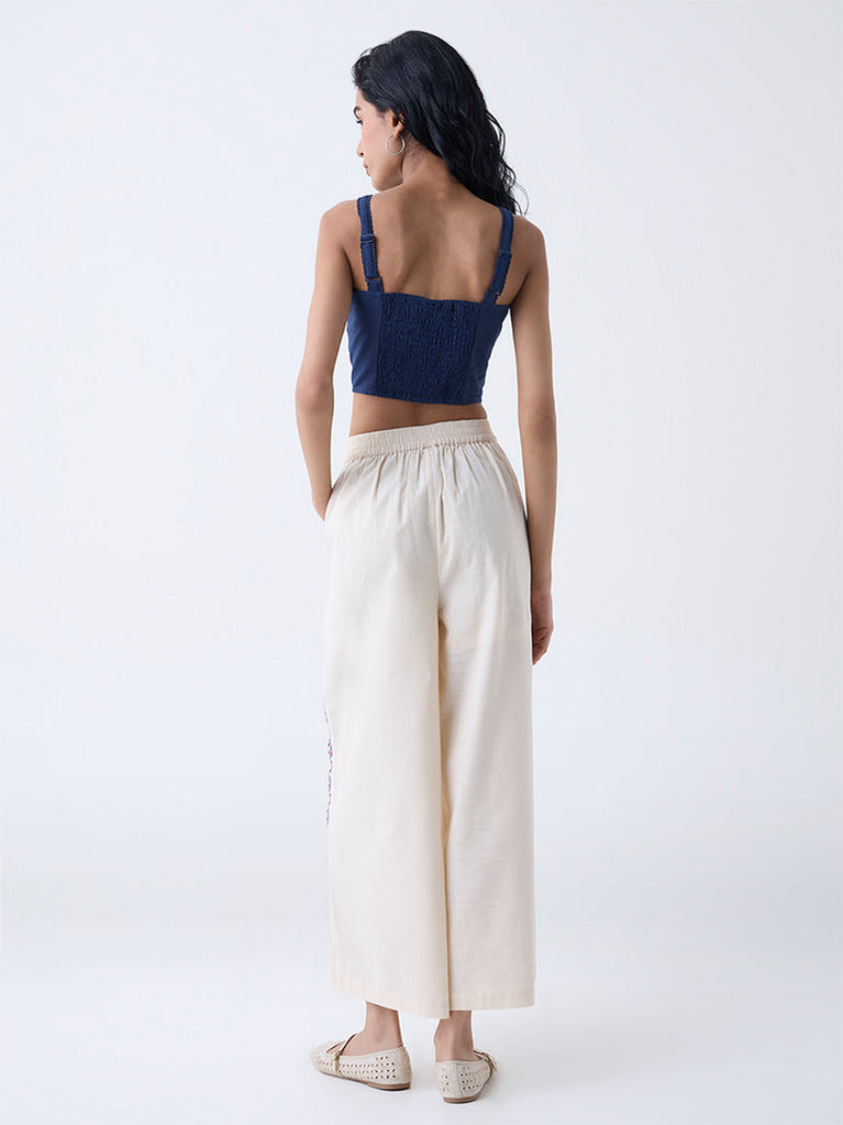 Elevate your Indo-western rotation with these black cotton-blend pants from Bombay Paisley, highlighted with traditional-inspired embroidery along the sides and hem. The relaxed silhouette and elasticated waistband ensure day-long ease, while side pockets add welcome practicality.