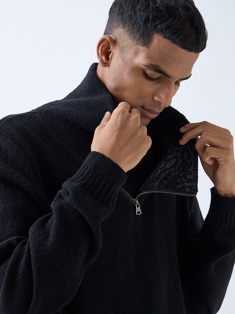 ETA Black Knit-Textured Relaxed-Fit Sweater