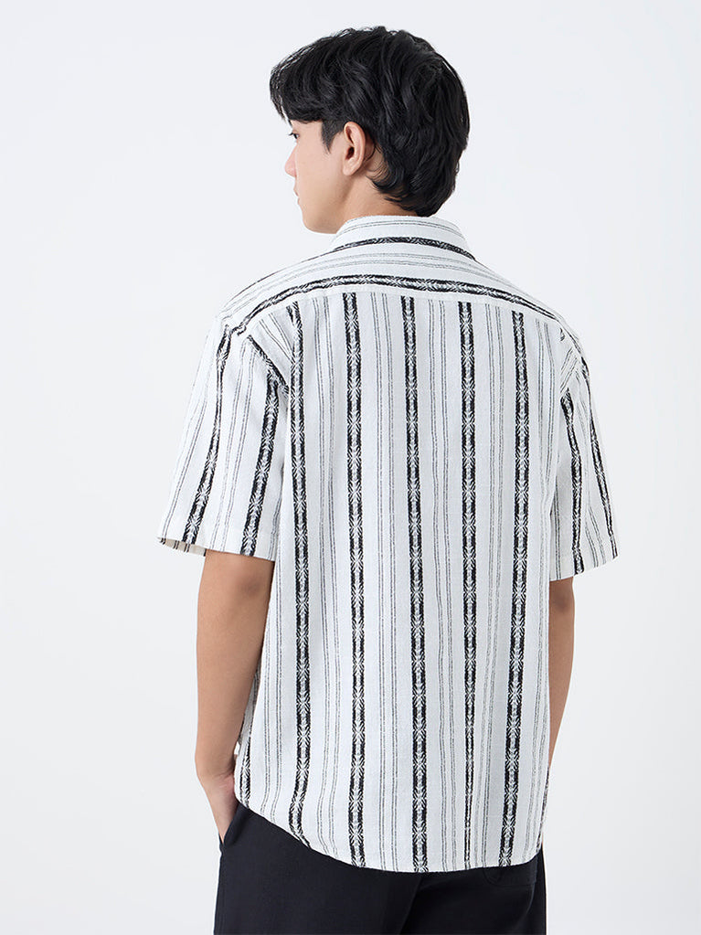 ETA White Striped Relaxed-Fit Cotton Shirt