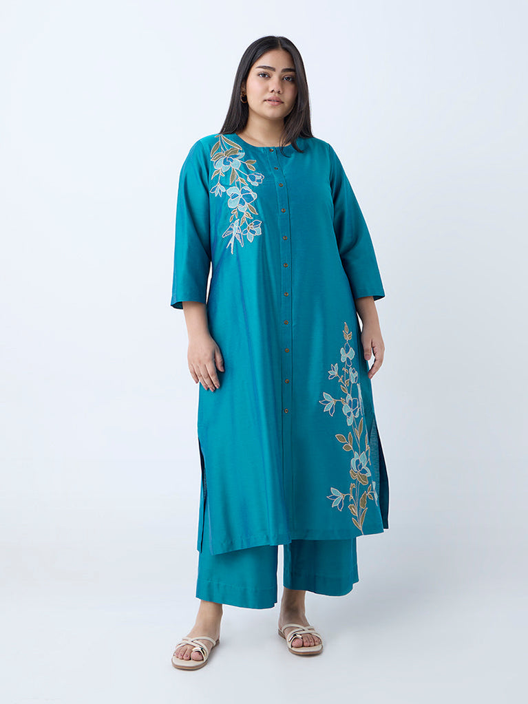Bombay Paisley Blue Floral Embroidered Cotton Pants
