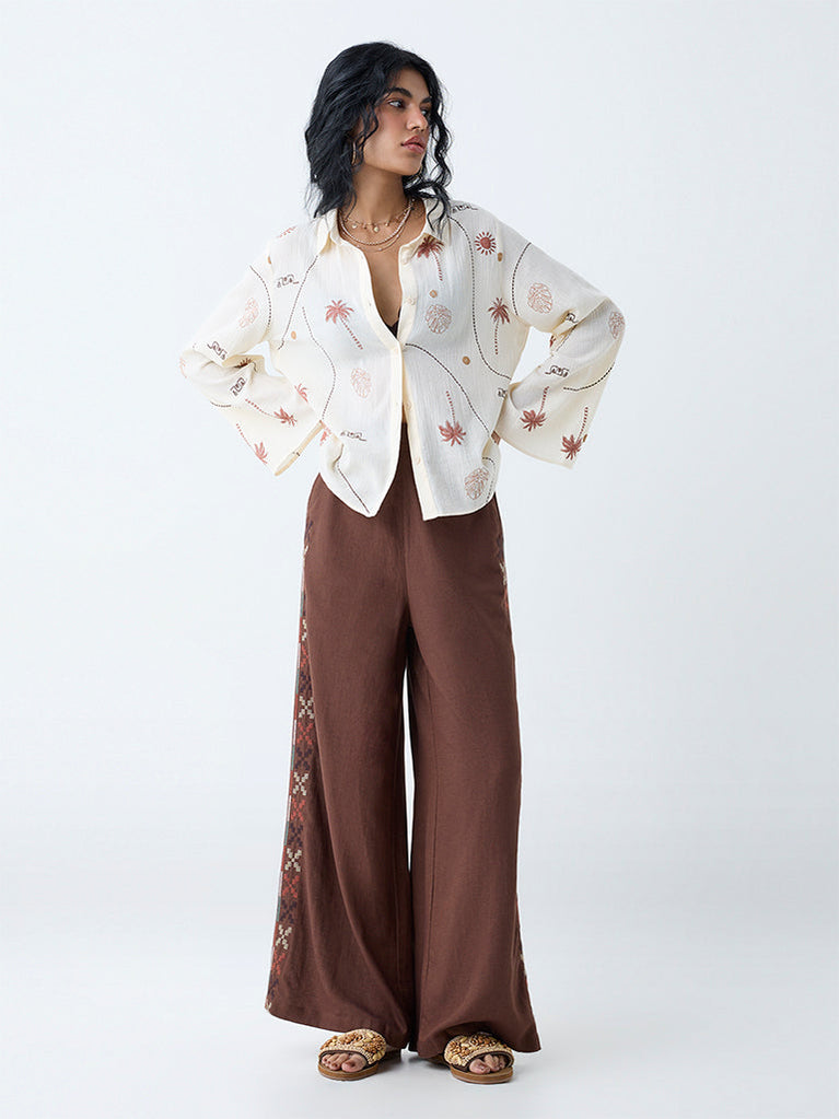 This off-white skirt from Bombay Paisley is shaped in a breezy tiered silhouette for effortless movement. The elastic waistband and side pockets add practical ease, while dainty floral embroidery lends a subtle Indo-Western charm. Ideal for sunlit brunches or leisurely weekend strolls, it’s a piece that brings comfort and style together.