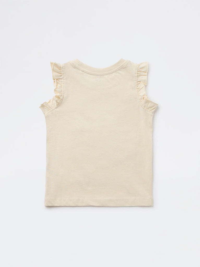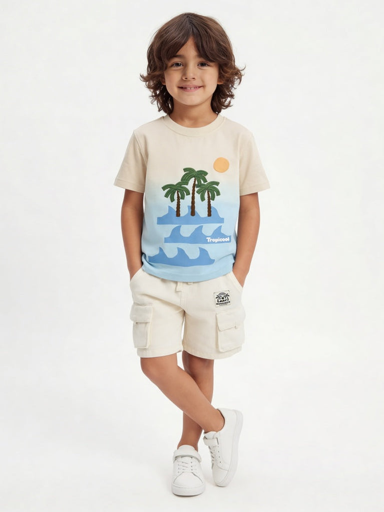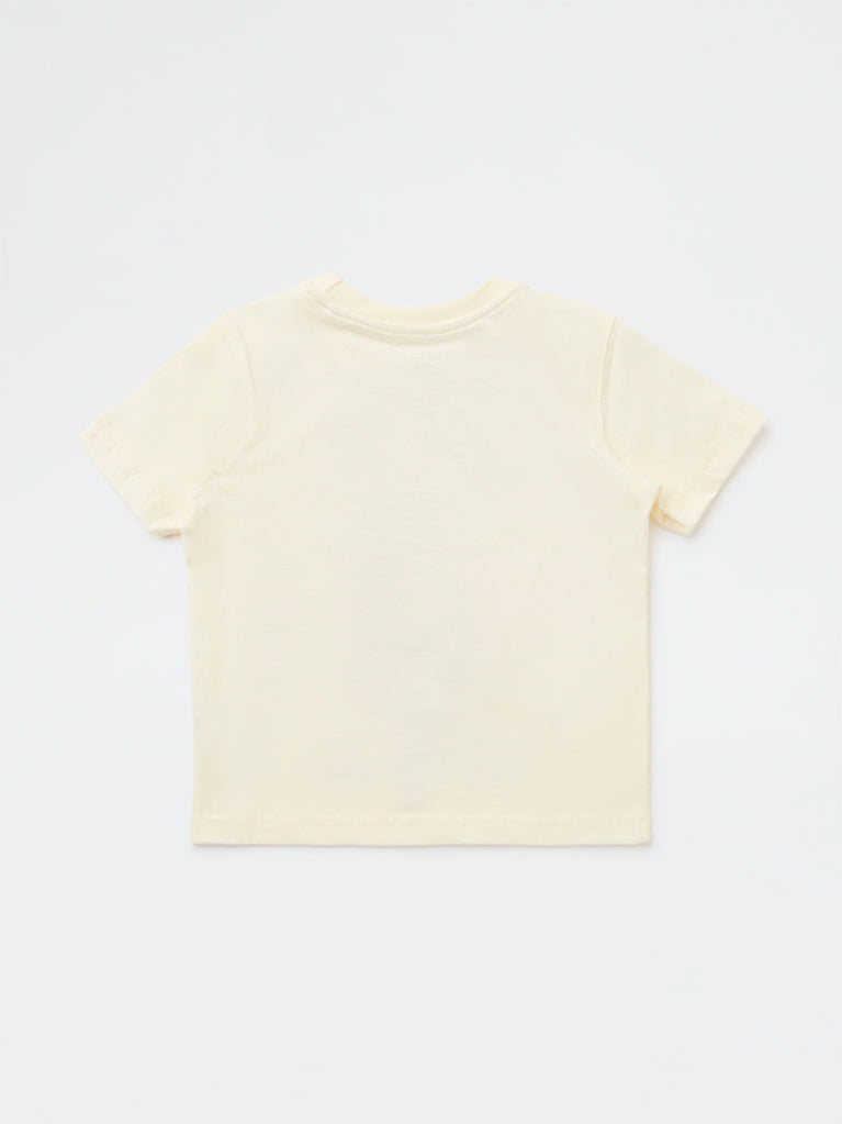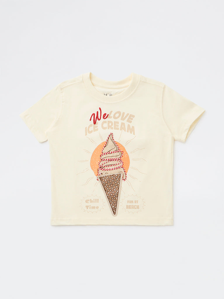 HOP Kids Boys Cream Graphic Printed Cotton T-Shirt