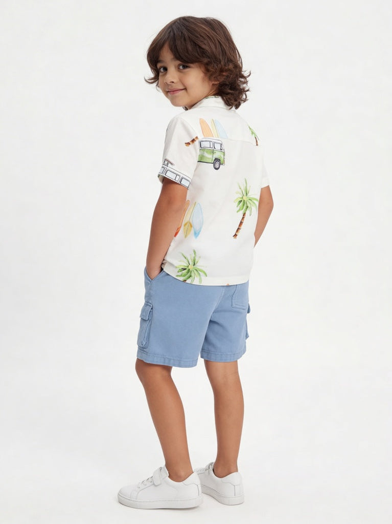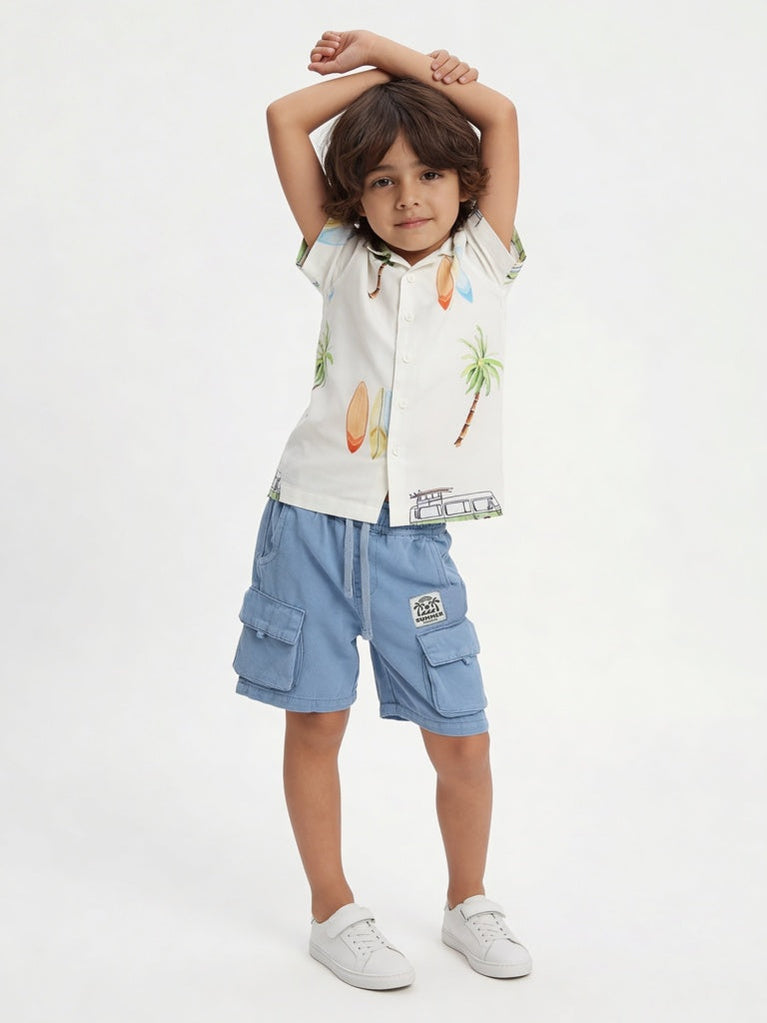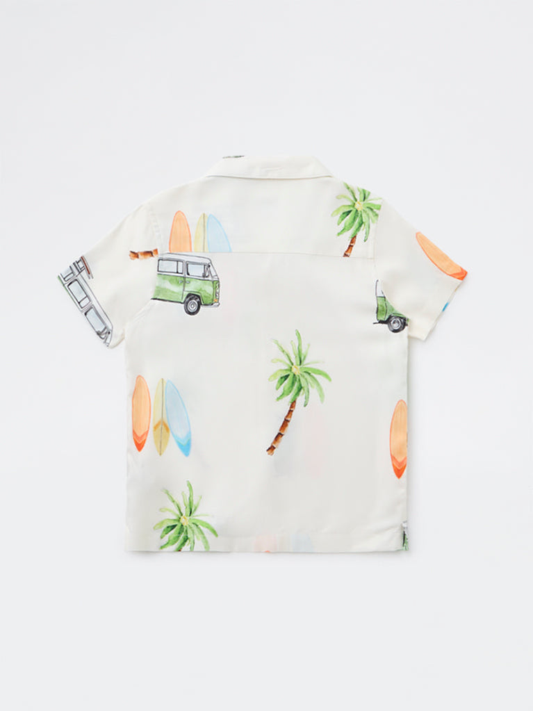 HOP Kids Boys Off White Tropical Printed Shirt