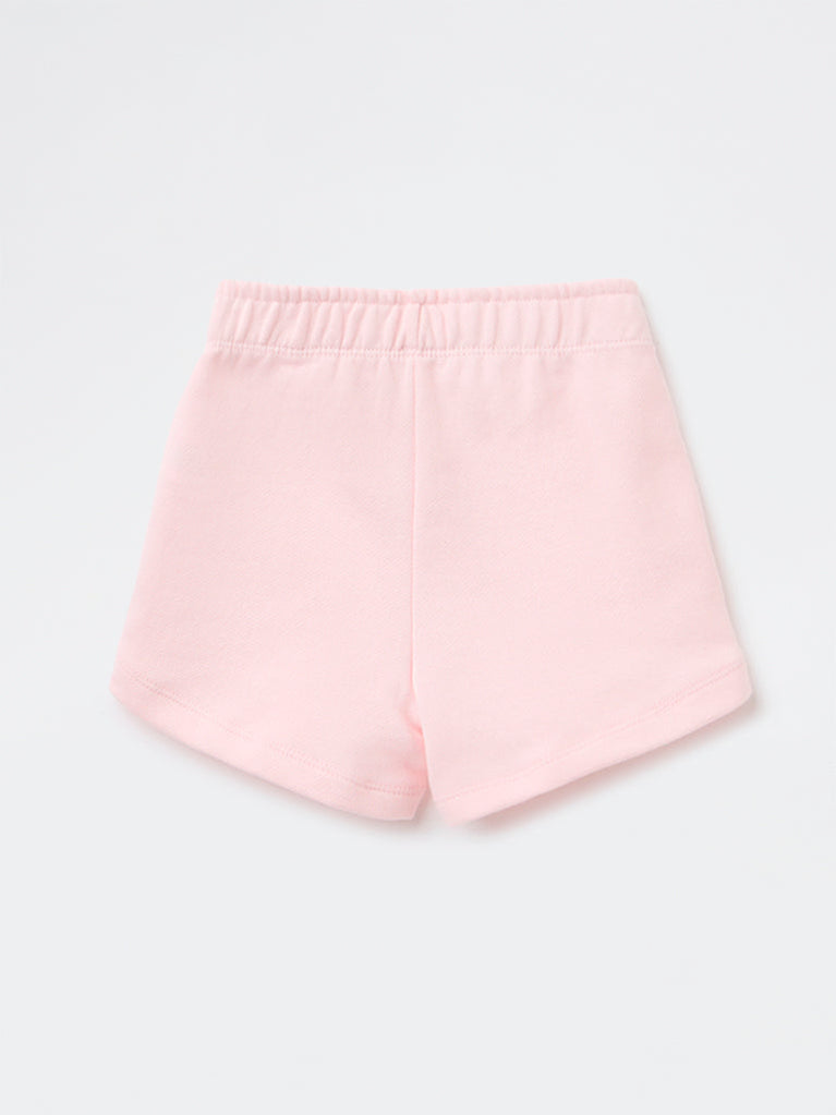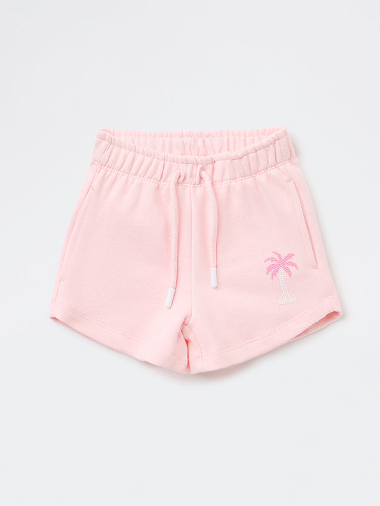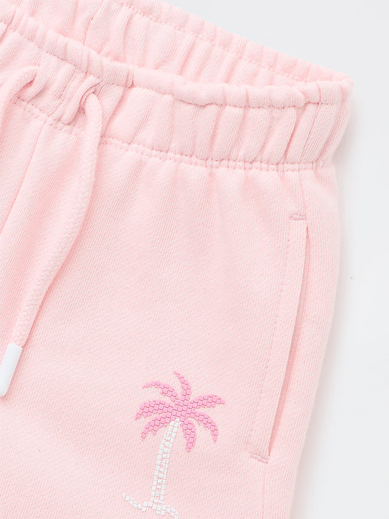 HOP Kids Girls Pink Tropical-Inspired High-Rise Cotton Shorts