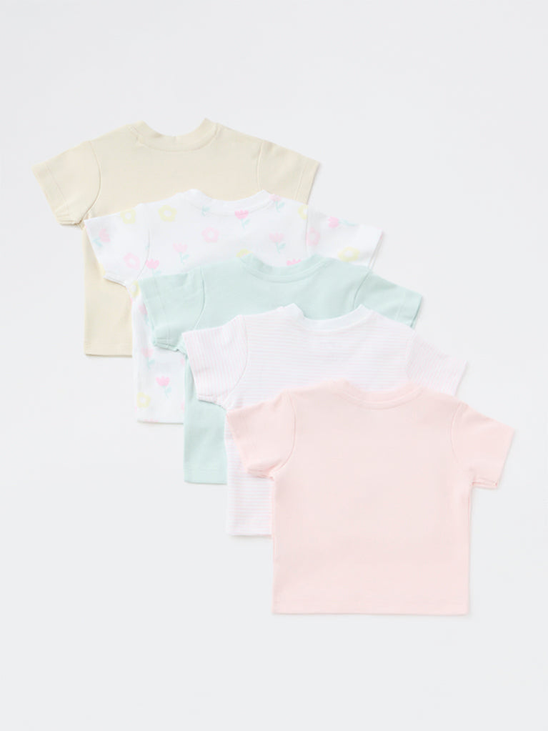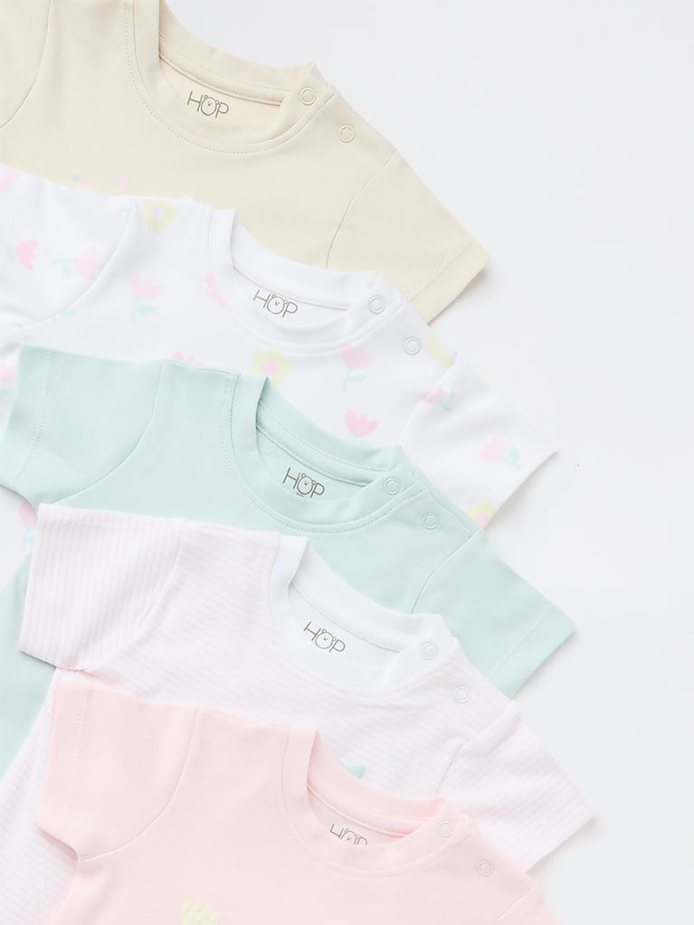 HOP Baby Girls Multicolour Cotton T-Shirt - Pack of 5